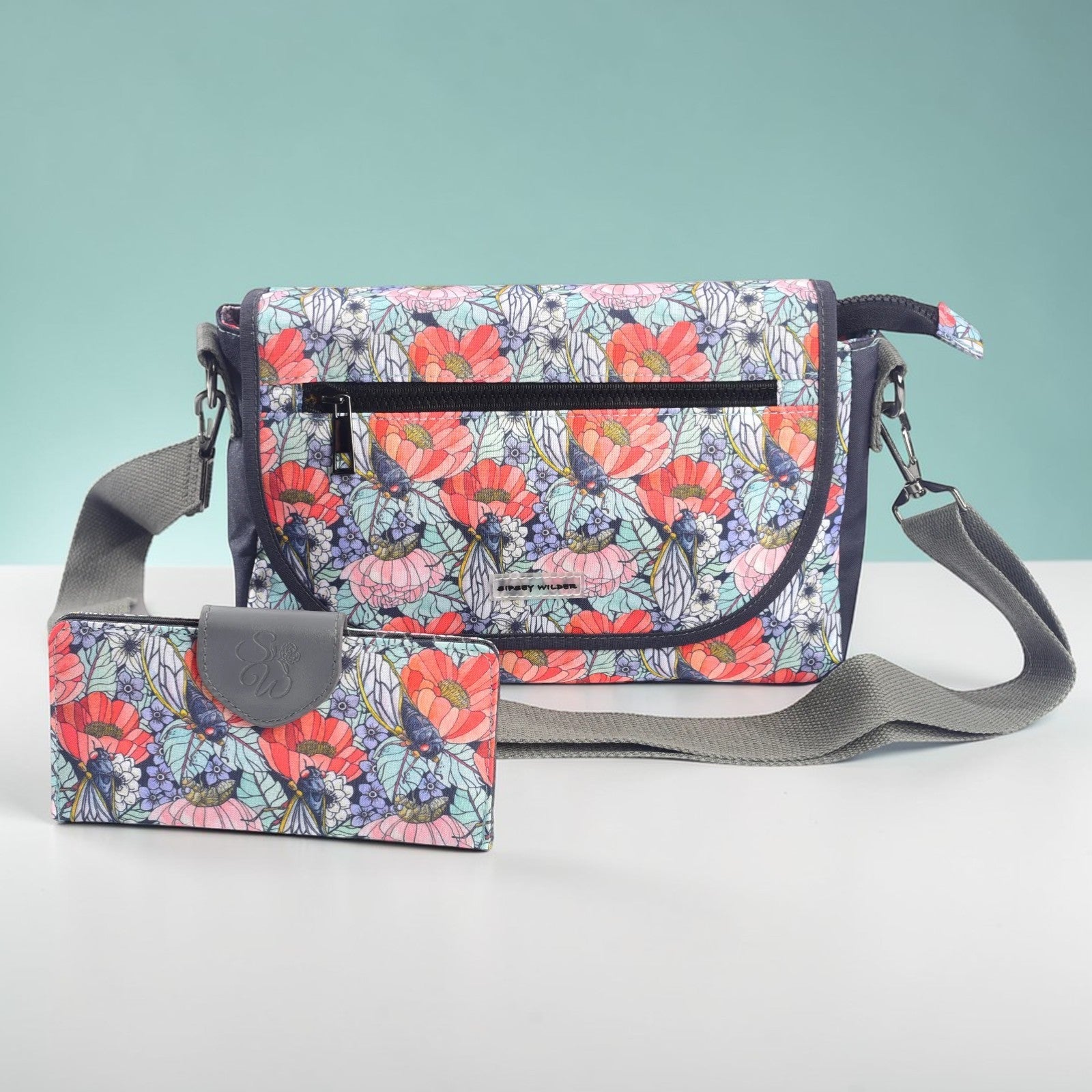 Beautiful watercolor cicadas perch on colorful blooms in mint green, rose pink and orange blossom. This gorgeous collaboration is a seamless pattern created from the stunning artwork of Cayla Mattea Zeek of Mattea Studio.