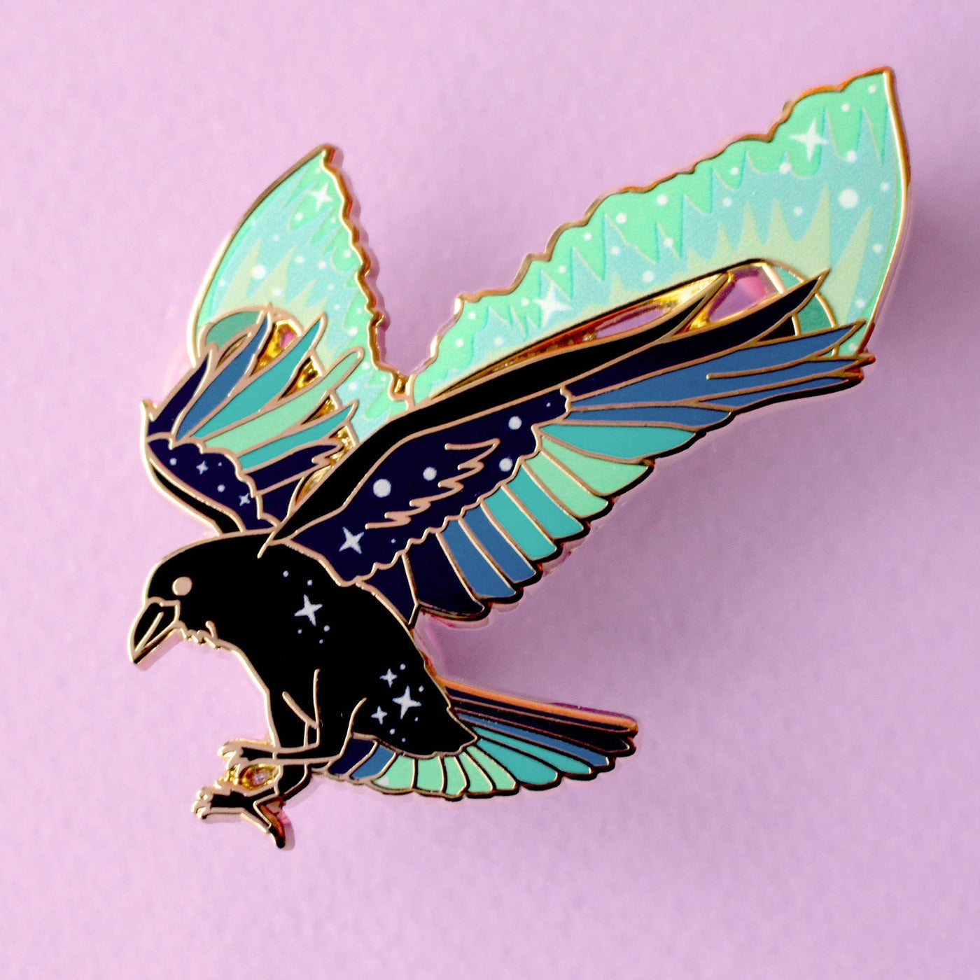 Home › Forest Birds › Northern Lights Raven Enamel Pin