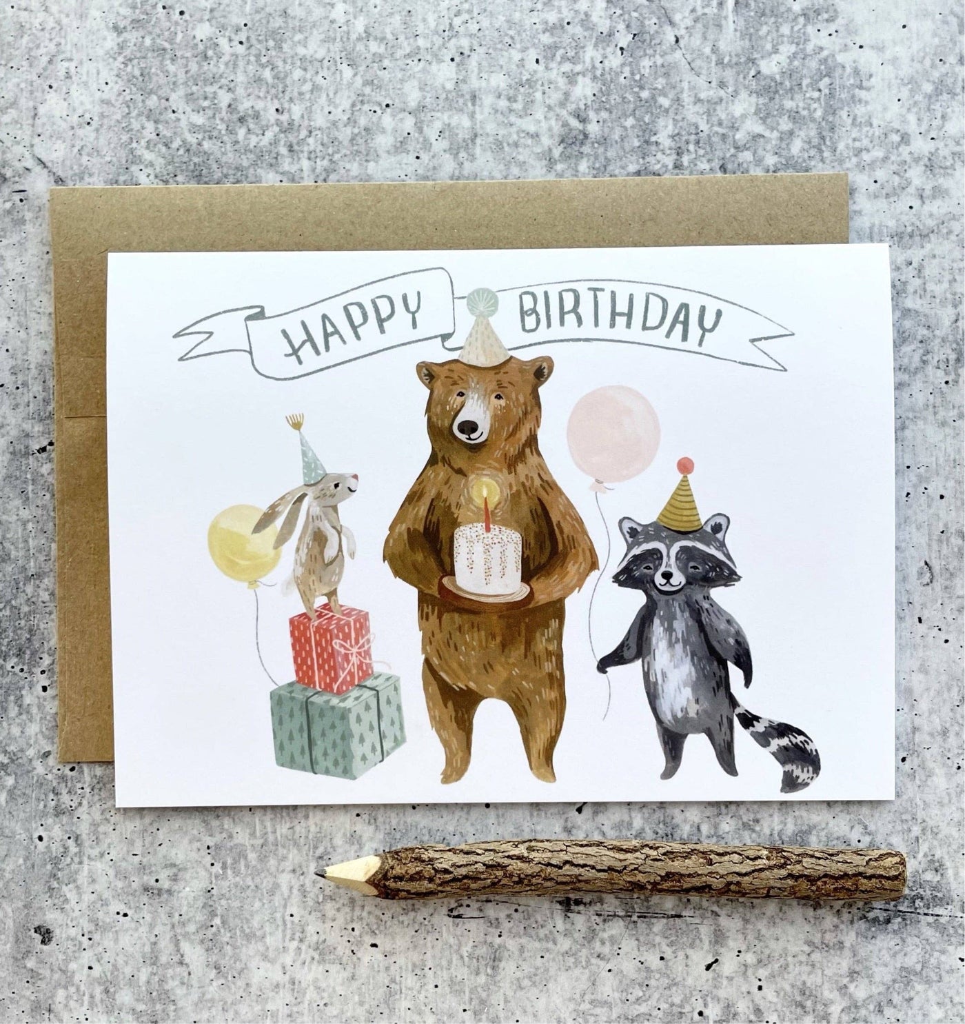 Home › Into the Woods › Birthday Bear, Hare & Raccoon Card