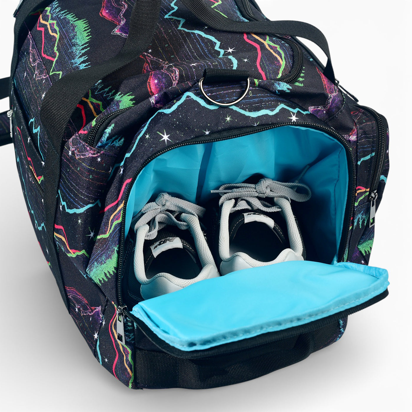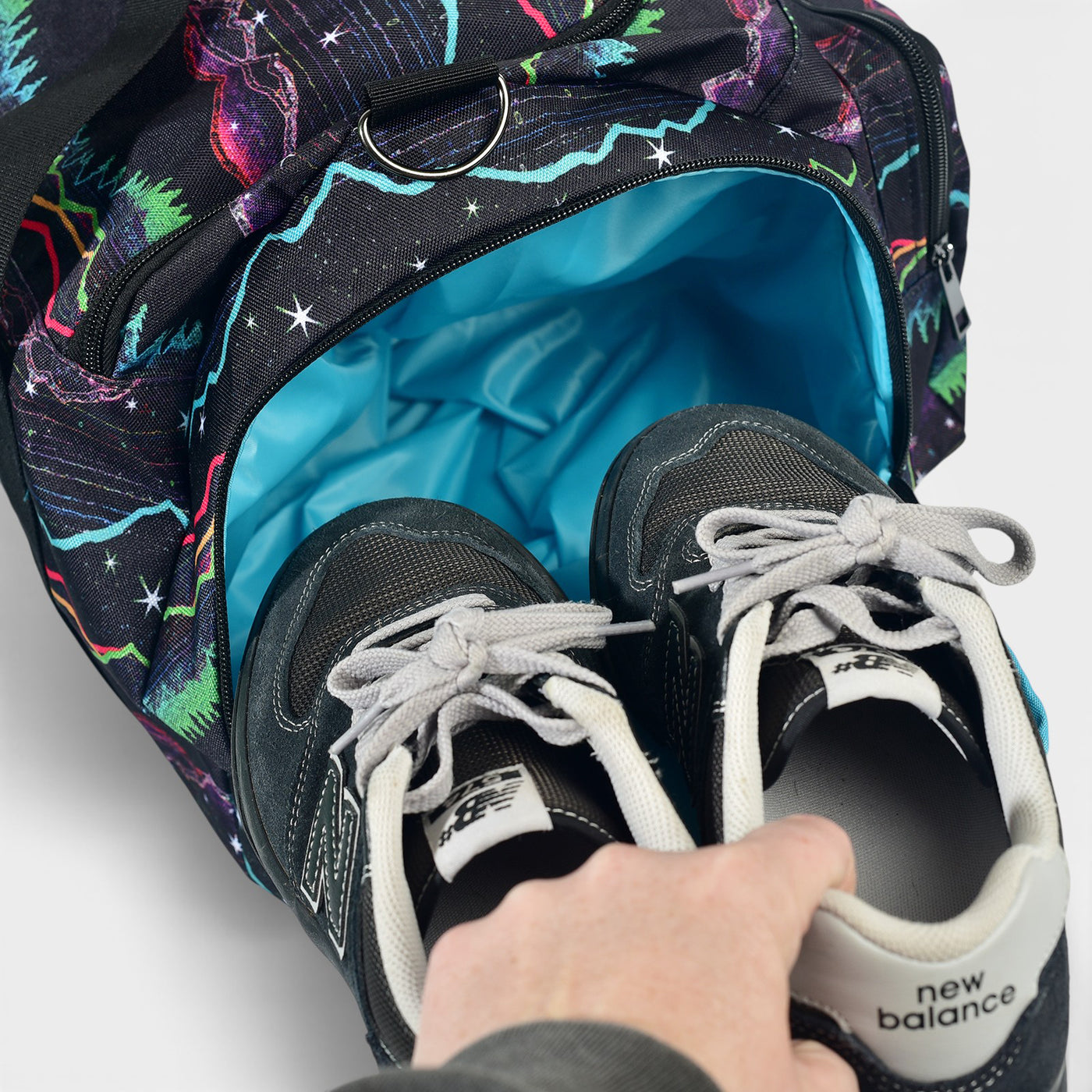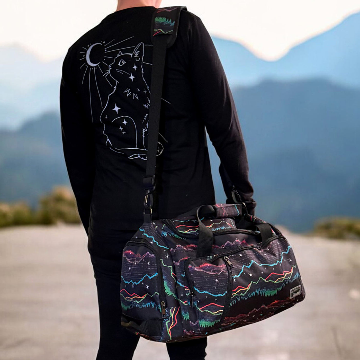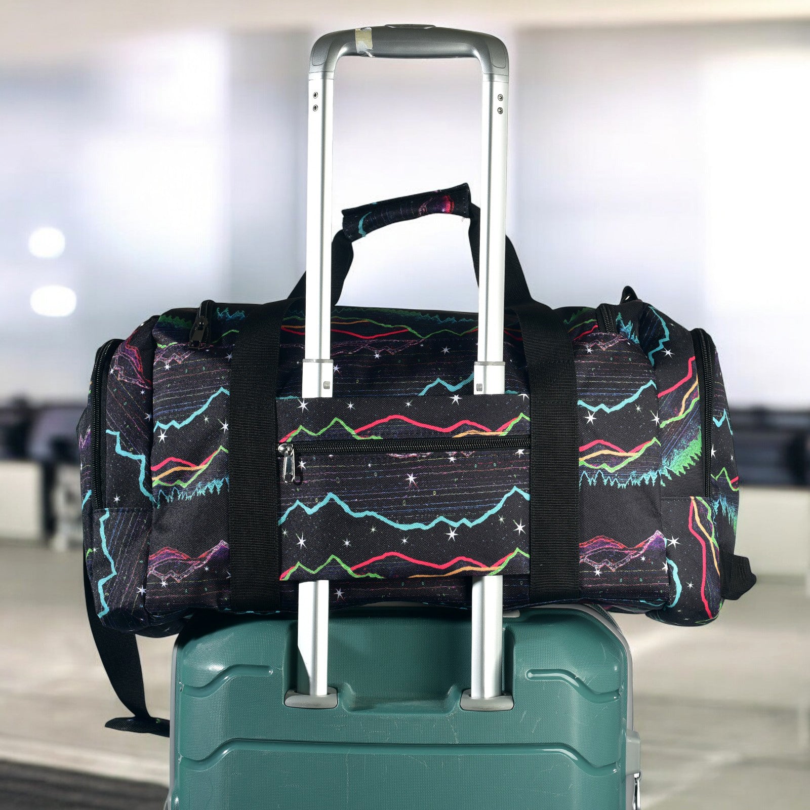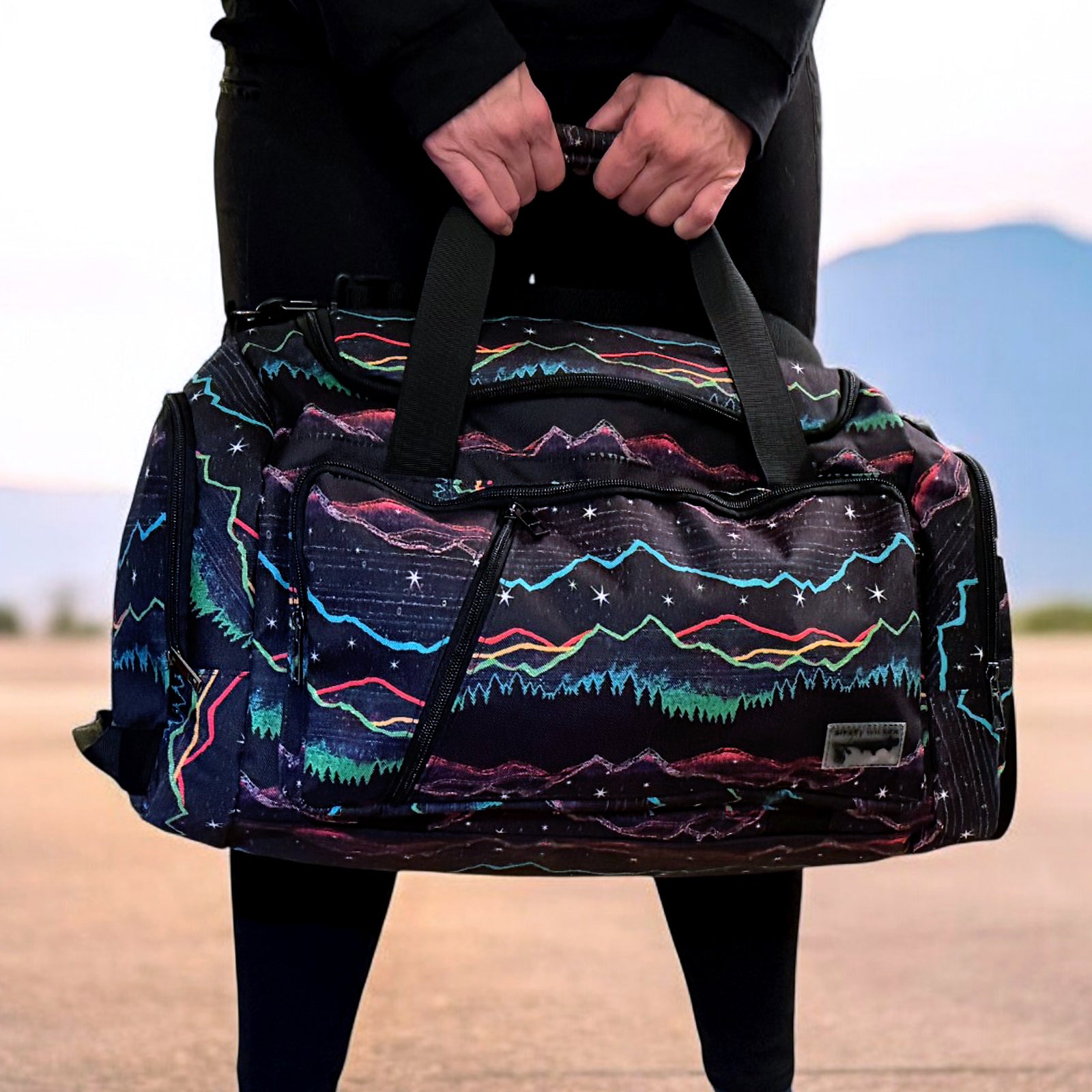 Our compact duffel bag combines style, functionality, and durability with its eye-catching printed fabric and carefully designed storage pockets. Crafted from high-quality, lightweight materials, the spacious main compartment offers ample room for clothing, gear, or travel essentials, while multiple strategically placed exterior and interior pockets make organization easy.
