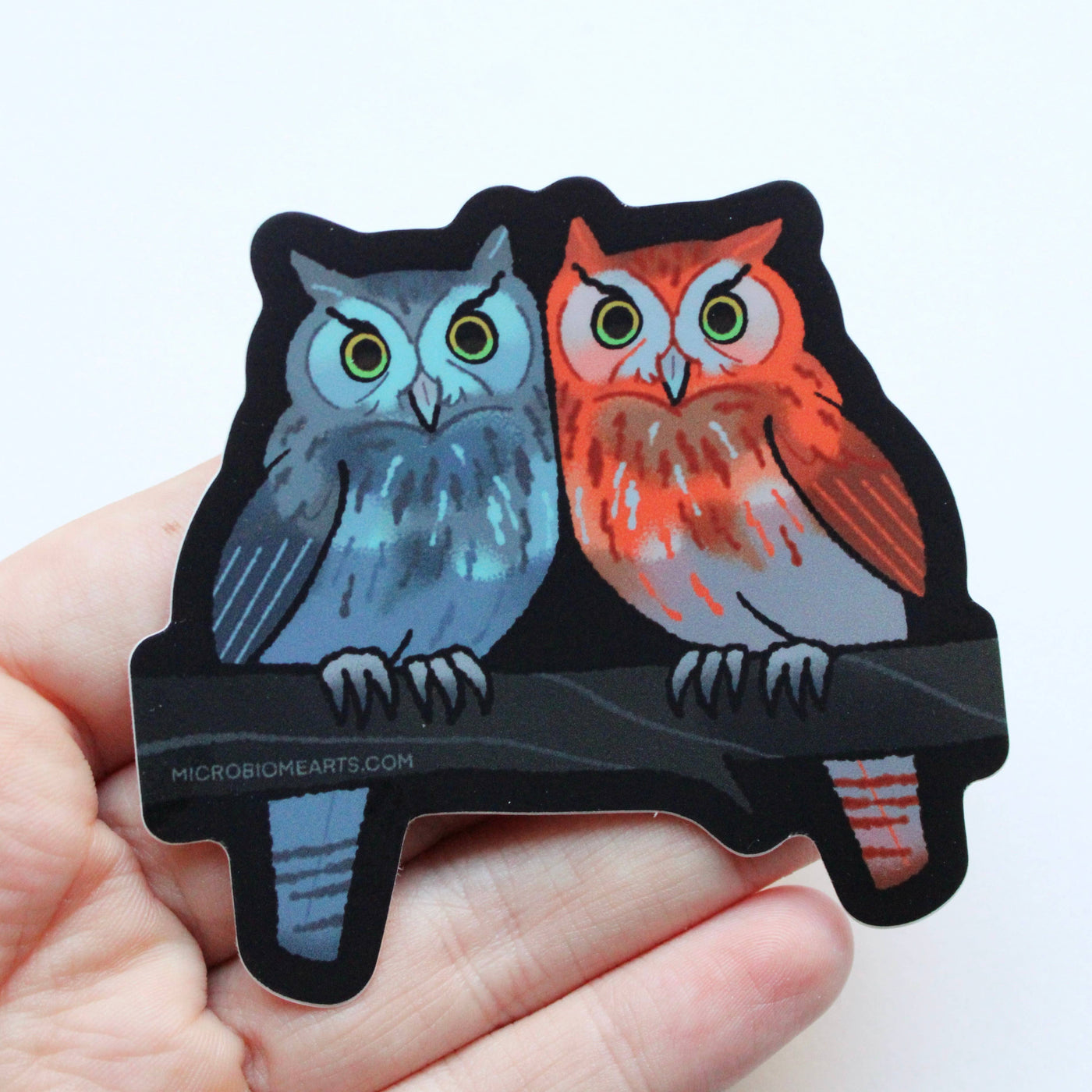 Two screech owl lovebirds, get it? By Microbiome Arts.