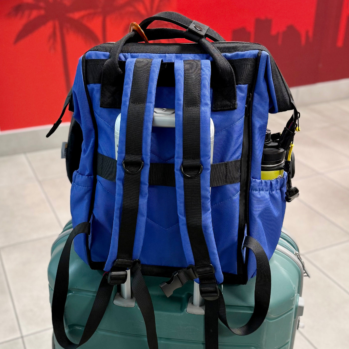 • Padded straps, double carrying handles with snap closure, custom zipper pulls, waterproof zippers.
