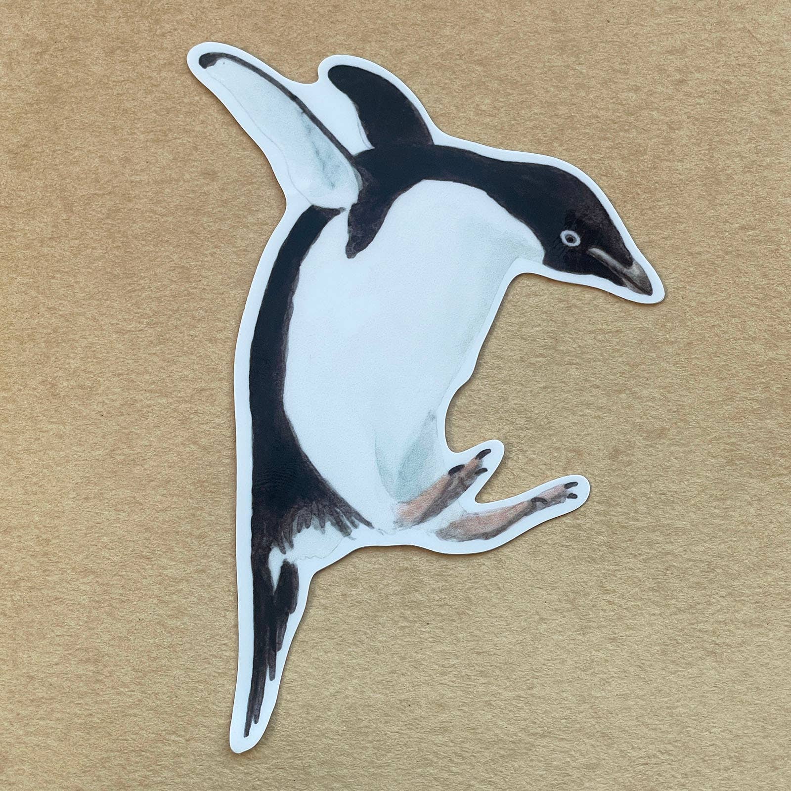 A little Adelie penguin hops around with joy! From an original watercolor and ink painting. Each die-cut, vinyl sticker is super durable and is sun, water and even dishwasher resistant! Actual size: 3.25 x 3.8 inches.