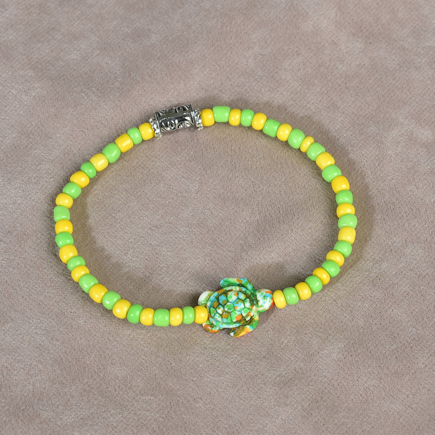 Sea Turtle Bead Bracelet (Green/Yellow)