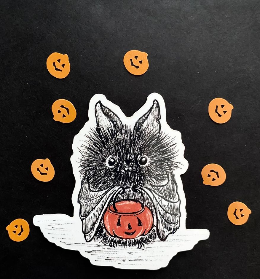 Chester's First Halloween Vinyl Sticker (Bat with pumpkin)