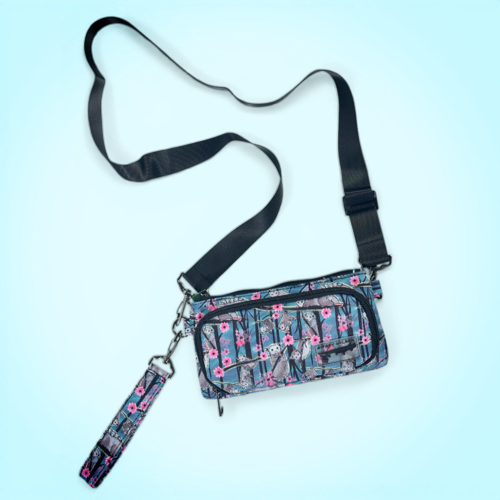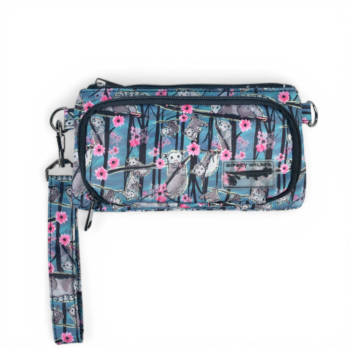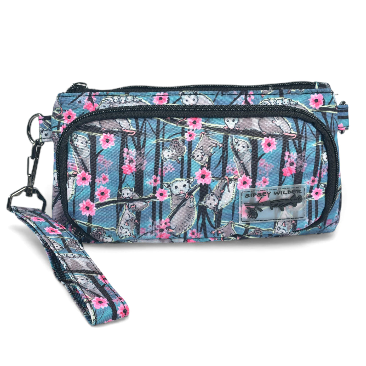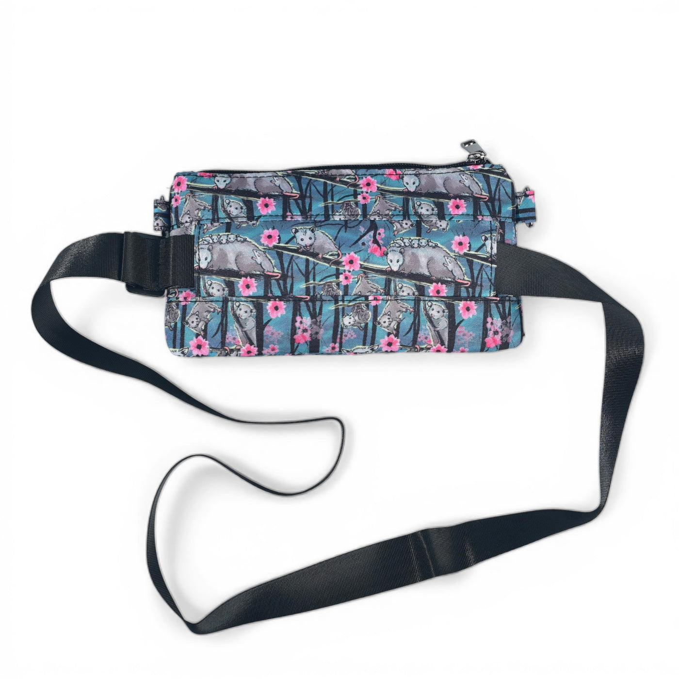 Hanging, climbing, hissing and cuddling opossums occupy a blossoming grove on a misty blue-green canvas. Opossums are North America's only marsupial and also one of its most misunderstood creatures. Smarter, cleaner and more beneficial to humans than most of its woodland neighbors, opossums are unique and wonderful animals that need our respect and protection.